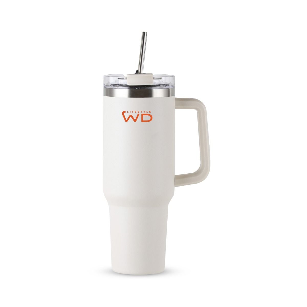 Un grand mug isotherme américain en acier inoxydable, pratique et facile à emporter partout.