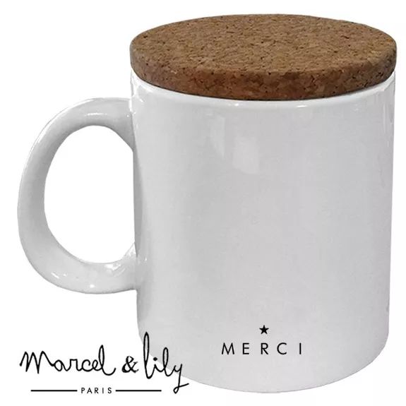 Un joli mug en céramique avec son couvercle en liège dans une jolie boîte en carton kraft recyclé à offrir !