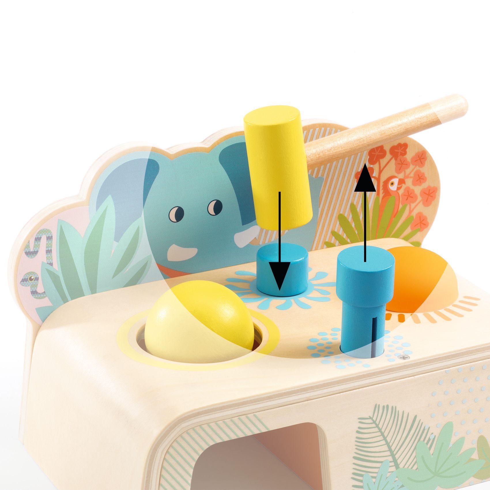 Contenu : 1 jouet à taper en bois avec 4 pièces et 1 maillet