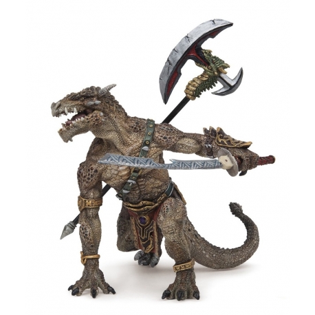 Son long sabre à la main, le mutant dragon est fin prêt à combattre. Il porte dans son dos une immense hache à double tranchant arborant une tête de dragon. Cest sans doute le plus résistant de tous les mutants, ses écailles sont si dures quil n'a nullement besoin de protection !