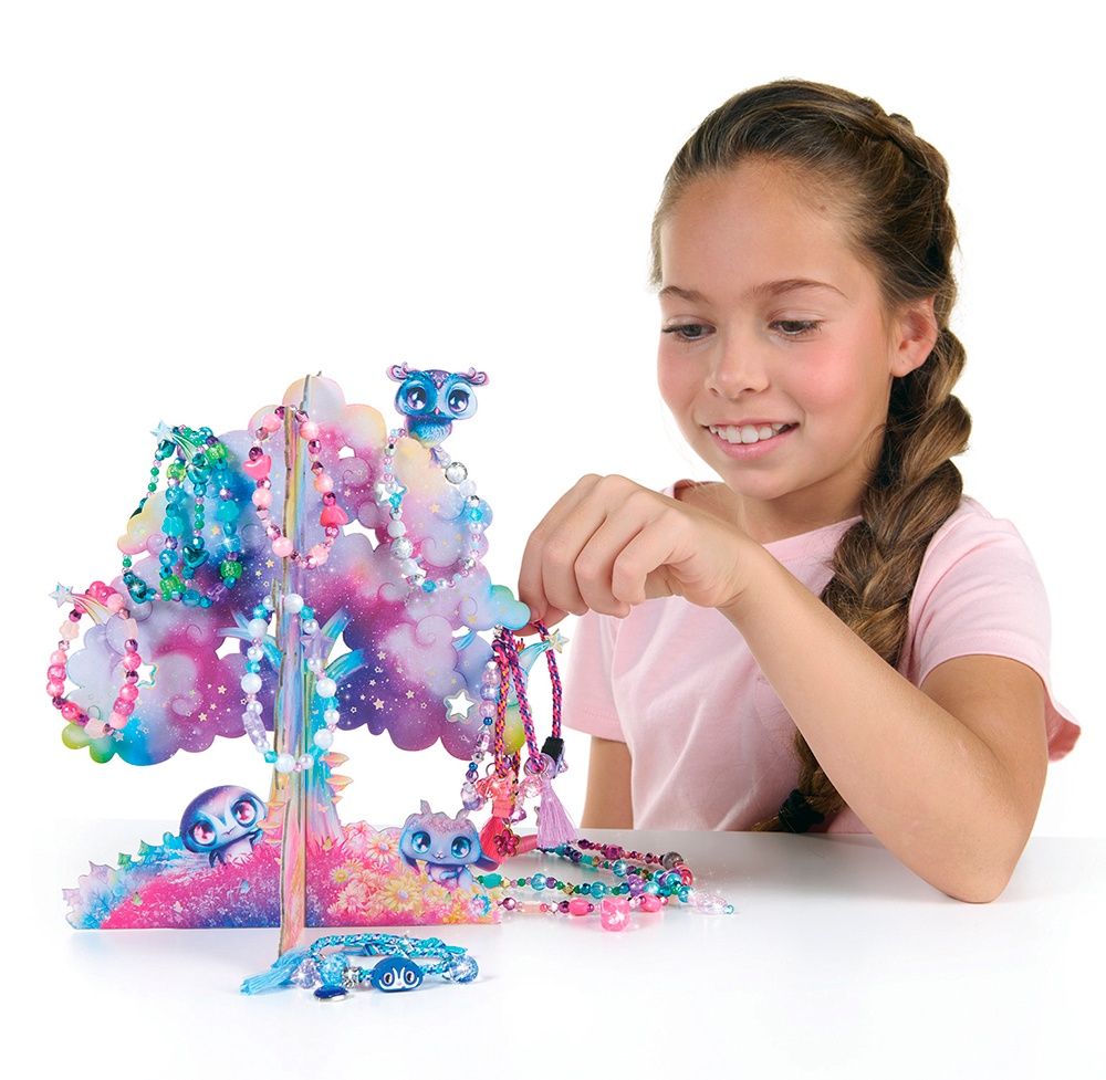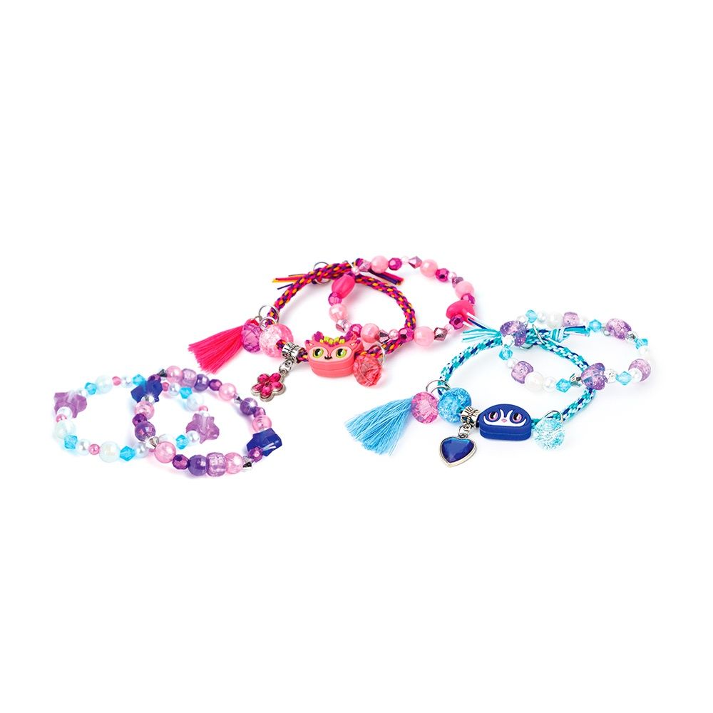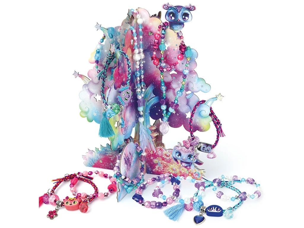 - Contenu : Arbre à bijoux en carton, roulette pour fabriquer les bracelets, 8 couleurs de fils nylon, cordons élastique, plus de 2000 perles, breloques à strass, breloques pompon, perles en silicone animoulous, fermoirs de sécurité détachable, fermoirs en plastiques, 30 anneaux.