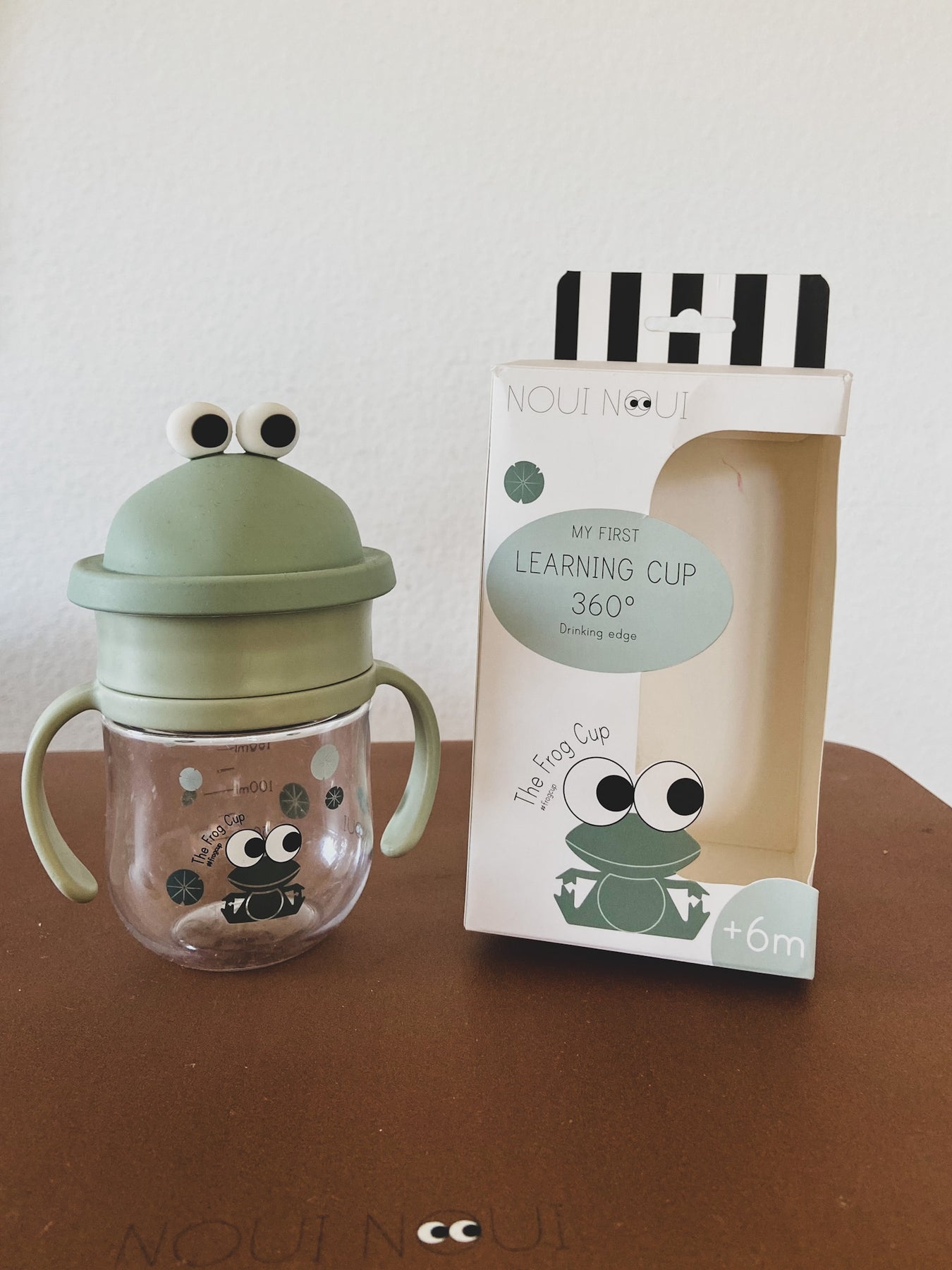 L'intérieur unique du gobelet grenouille se referme automatiquement après avoir bu, de sorte que la tasse reste étanche! Les poignées sont spécialement conçues pour les petites mains. Le couvercle en silicone avec les yeux Noui Noui offre une protection hygiénique supplémentaire lors de vos déplacements.