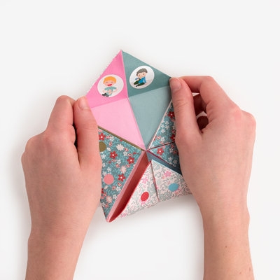 De jolis papiers, un pliage d'origami simple et bien expliqué, et 20 gages amusants à coller sous les languettes. Un incontournable jeu de récréation.