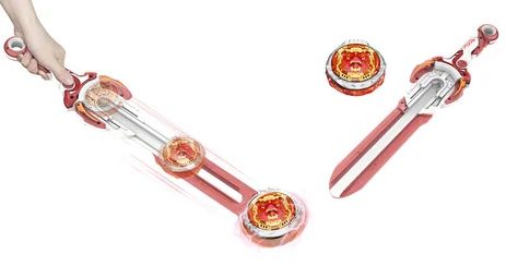 À l'aide de ton lanceur Sabre, booste ta toupie 3D pour accumuler un maximum de puissance en actionnant la lame.