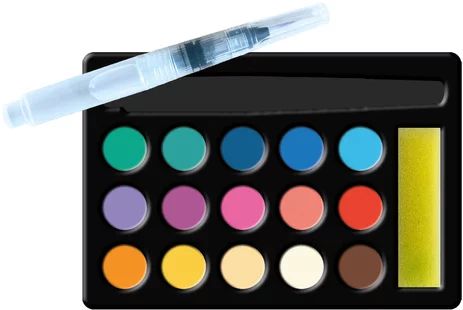 Contenu : 1 pinceau à réservoir d'eau, 15 couleurs de peinture aquarelle et 1 éponge, 4 tableaux à décorer, 1 cadre 3D à construire avec la boîte