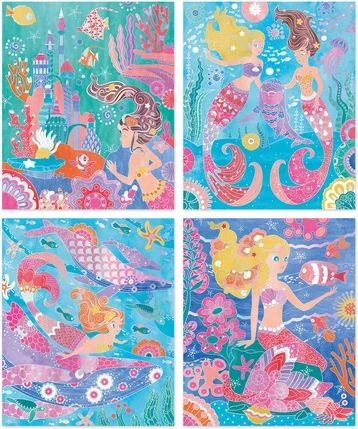Ce kit créatif est composé de 4 tableaux représentant de jolies scènes aquatiques.
