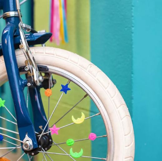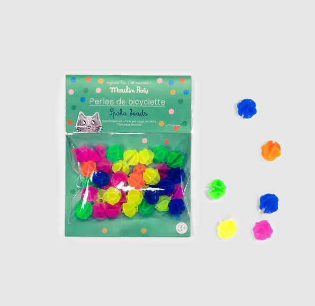 Décore ta bicyclette en clipsant les 36 perles boules sur les rayons de tes roues. En route pour une aventure multicolore !