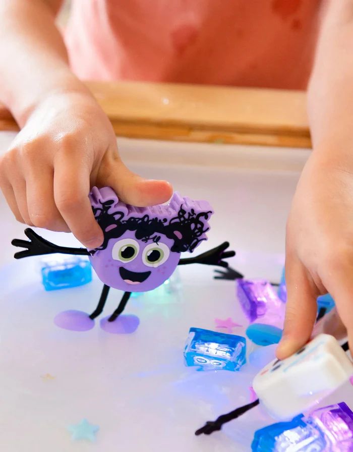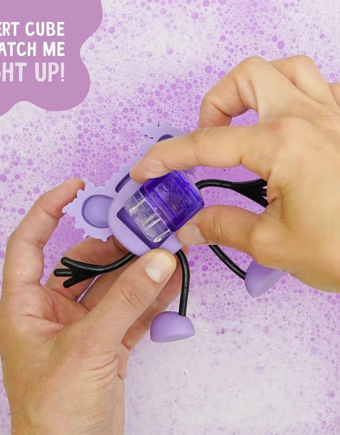 Comment? Insérez votre cube lumineux Glo Pals à l'arrière du personnage, plongez-le dans l'eau et regardez-le s'illuminer !