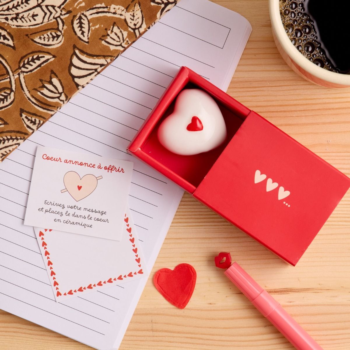 Un joli message à faire passer, un petit mot d'amour à glisser ou une annonce surprise à faire à sa moitié ? Ce petit cœur en céramique blanc et rouge est un objet déco qui fera office de messager parfait pour des annonces remplies d’émotion. À l’intérieur, un petit rouleau de papier attend d’être déplié pour révéler votre surprise : un mot doux, une grande nouvelle, ou une demande spéciale...laissez parler votre coeur !