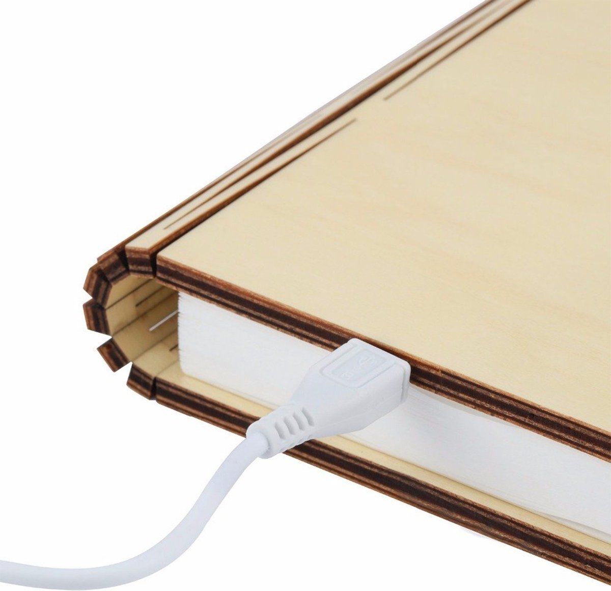Une fois fermée, cette lampe de livre intelligente se fait passer pour un livre en bois découpé au laser, mais une fois ouverte, elle se transforme en une lumière sculpturale émettant une merveilleuse lumière LED douce et chaleureuse d'ambiance à travers les pages.