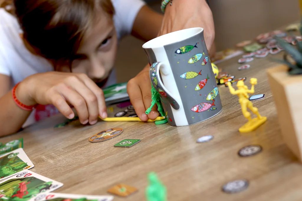 C'est un jeu accessible avec des règles simples mais évolutives : que ce soit sur une table de petit-déjeuner encombrée, un bureau ou un tapis d’enfant, tout élément du quotidien devient un décor de jeu.