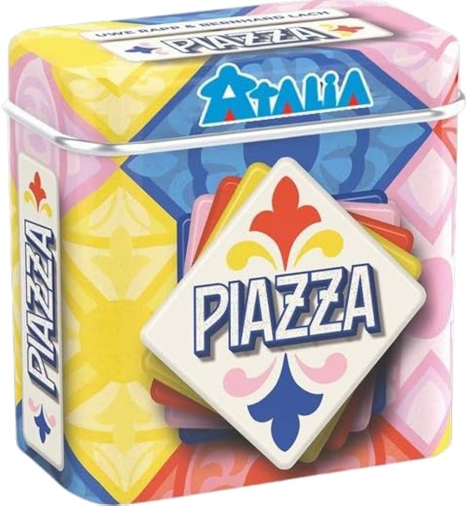 Piazza est un jeu de placement dans lequel les joueurs déposent à tour de rôle leurs cartes pour former des "parenthèses" de cartes. Ils reçoivent au fur et à mesure des points de victoire en fonction des parenthèses formées et fermées. Le gagnant est celui qui en aura remporté le plus à la fin de la partie.