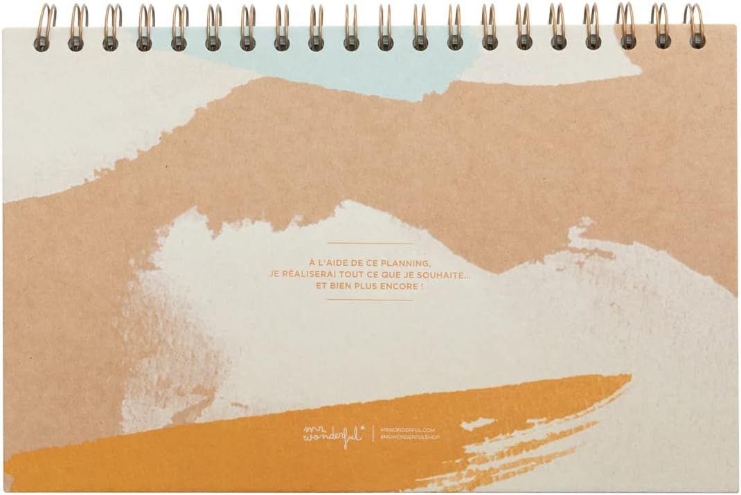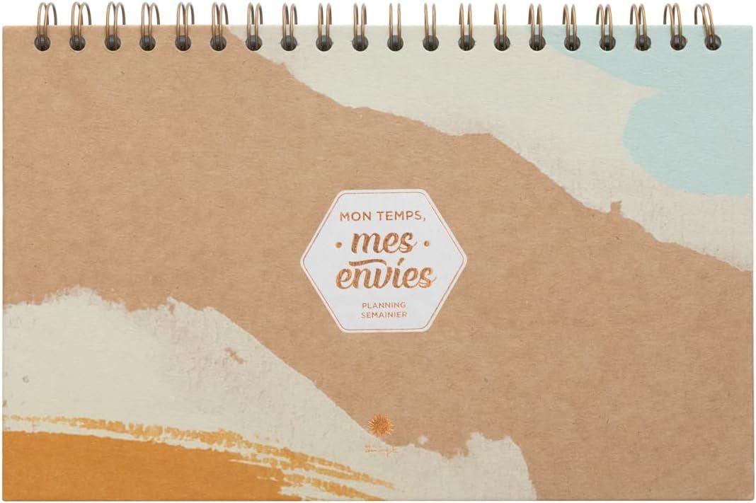 Planning semainier avec reliure à spirale. À l'intérieur, quatre designs différents s'alternent tout au long des 162 pages. Il dispose également de 4 feuilles d'autocollants.