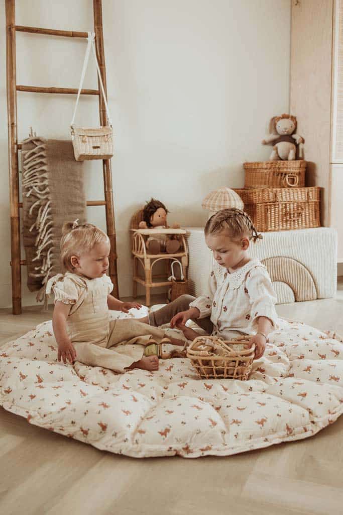 Lorsque les pétales sont déployés il s'agit d'un tapis d'éveil et lorsque les pétales sont redressés vous pouvez l'utiliser en tant que parc d'éveil au contour sécurisant et rassurant ou encore en panier de rangement pour une chambre ou une salle de jeu. Un produit 3 en 1 qui évolue avec bébé.