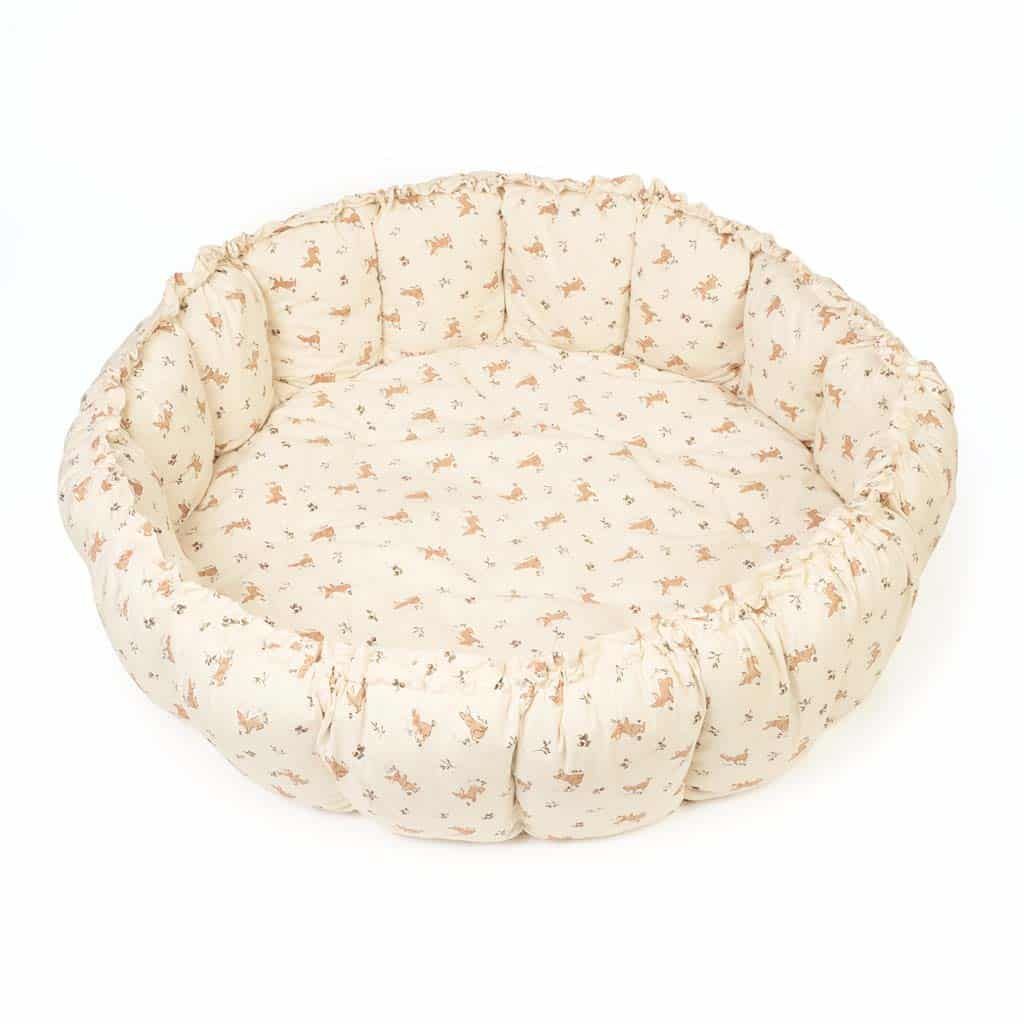 Les pétales se redressent grâce à un système de ficelles que l'on tire, une action simple qui se réalise en moins d'une minute pour passer du tapis au panier. Confortable et moelleux c'est un produit idéal pour les premiers mois de bébé. Son tissu en coton biologique et son rembourrage polyester recyclé apporte confort et douceur tout en respectant l'environnement. Un produit tendance grâce à son design épuré.