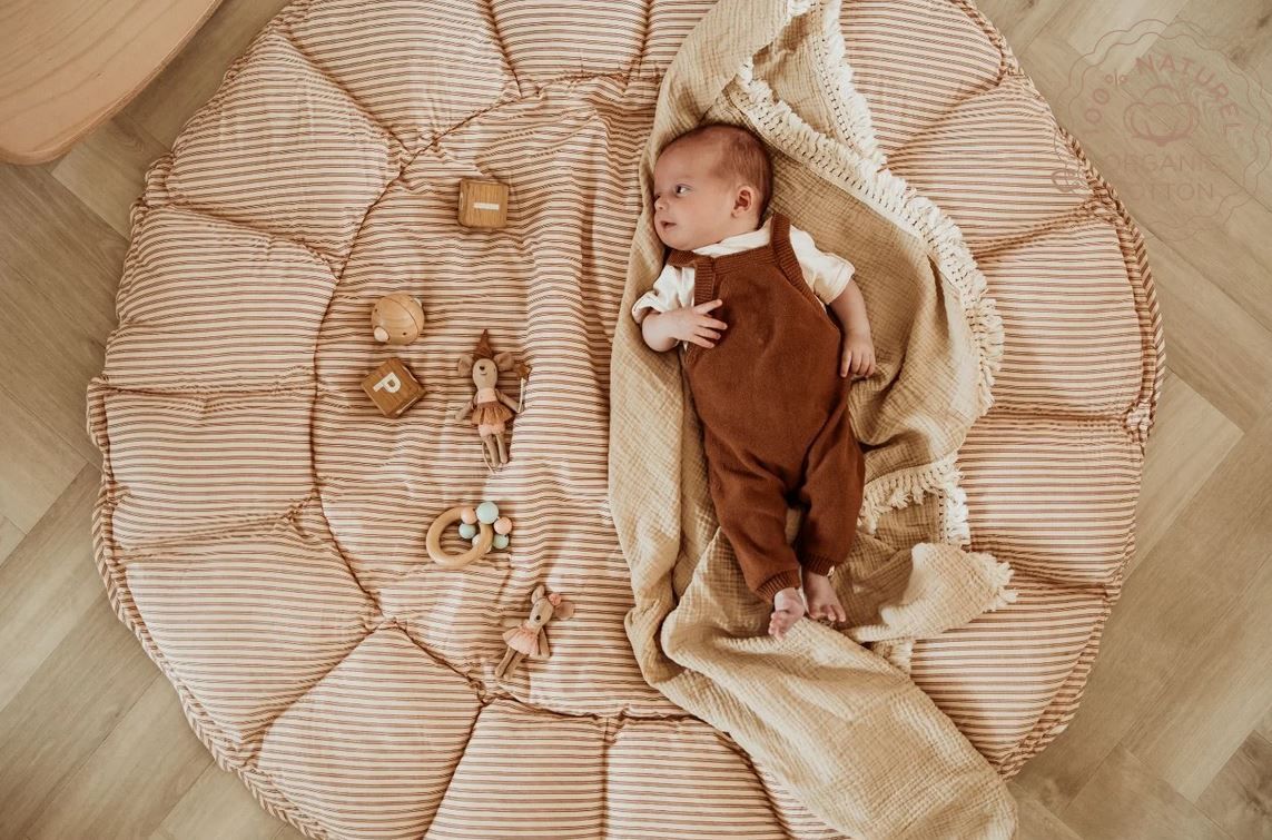 Play and Go coco rayé brun - Tapis d'éveil à bords relevables