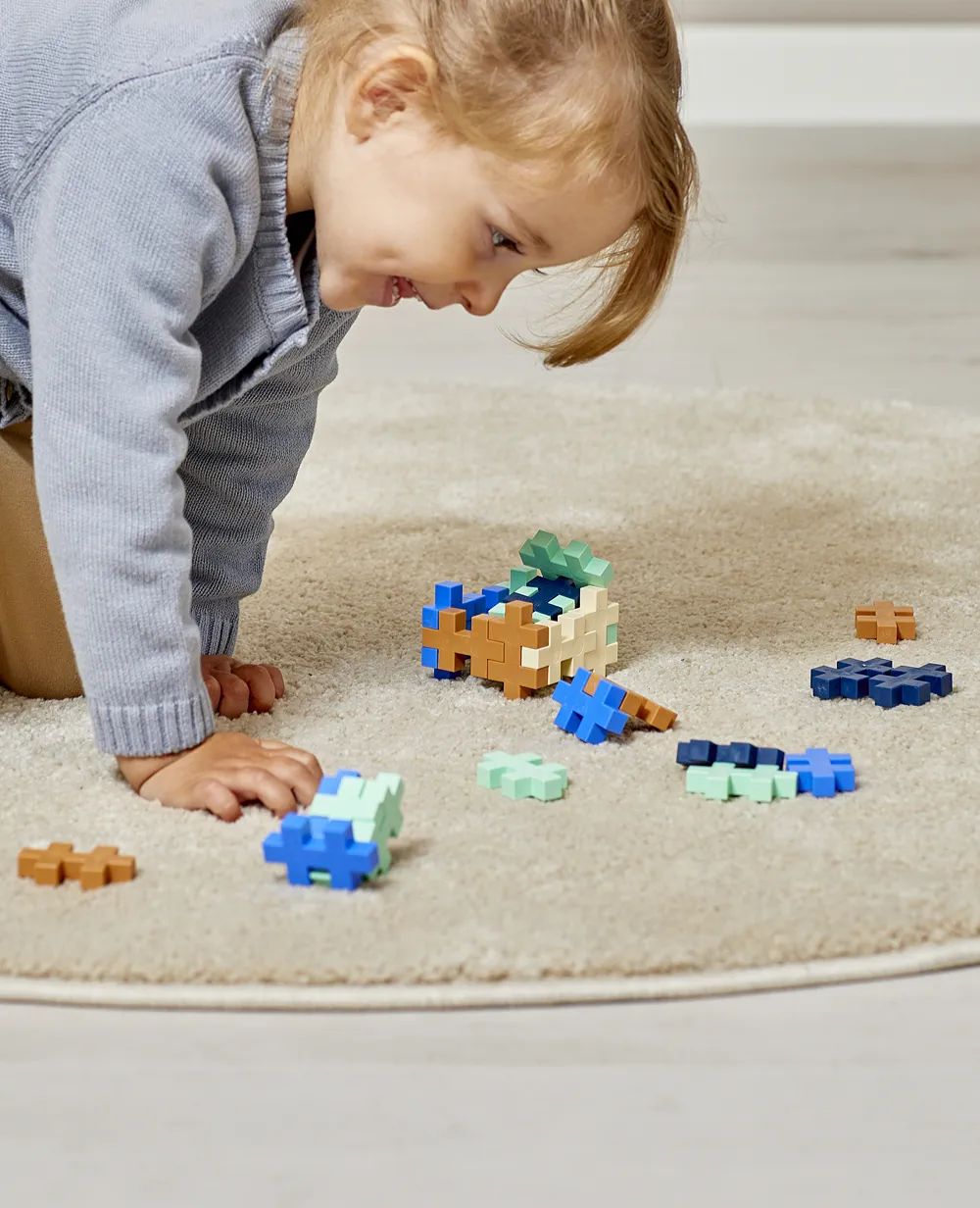 Découvrez ce tube aux jolies couleurs tendance : bleuet, camel, vert menthe, bleu océan et vanille. Avec ces briques de construction, les enfants dès 12 mois peuvent manipuler, mordiller, empiler et emboiter à l’infini.