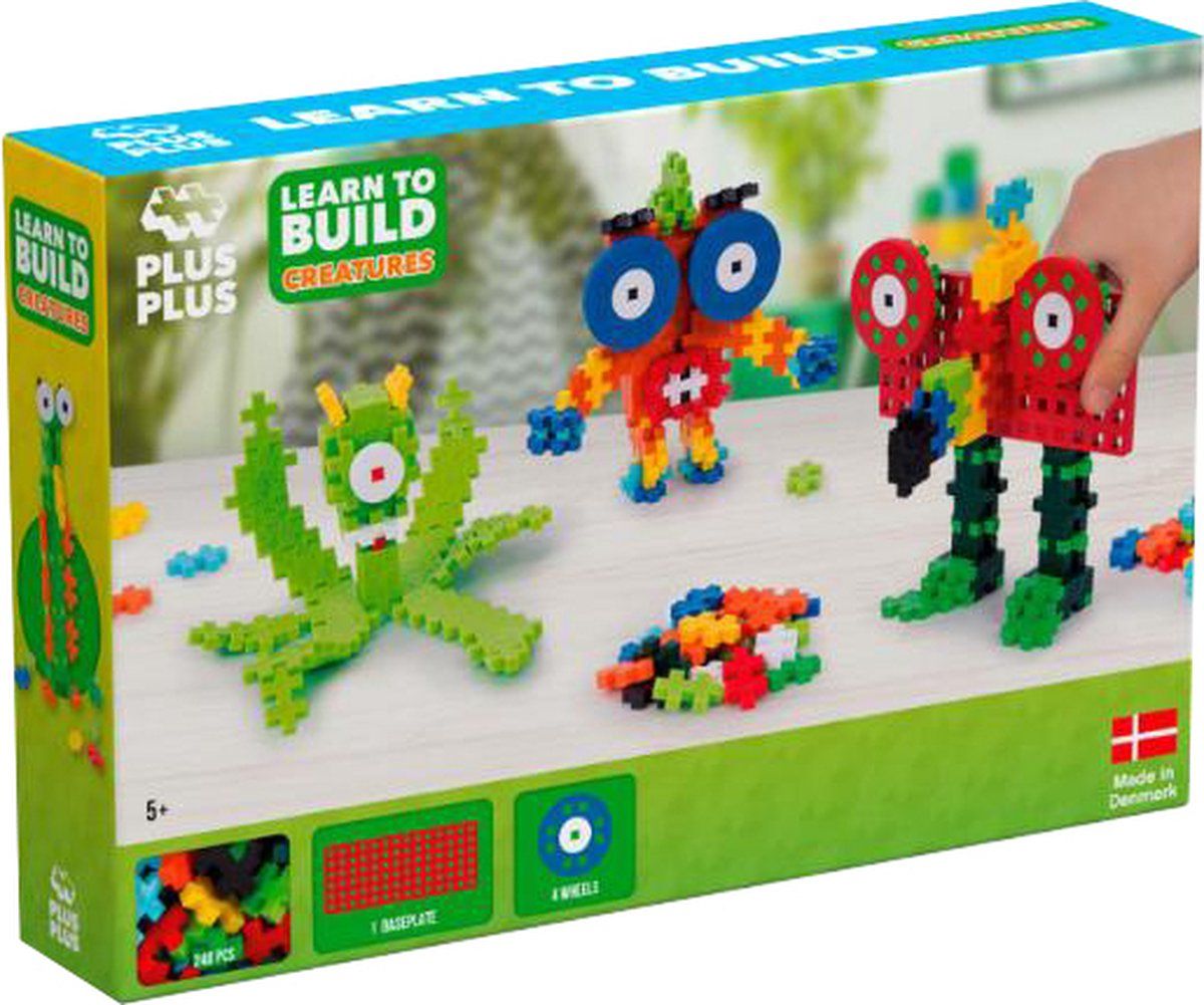 Bienvenue dans le monde rigolo des créatures Plus-Plus ! Avec ce kit de jeu de construction, amusez-vous à créer et construire d’adorables petits monstres aux couleurs flashy. Un toucan aux allures de robot, un hibou haut en couleurs… Ce set découverte contient 240 pièces CLASSIC (20 mm et 10 couleurs), un châssis, 4 roues et une notice de construction.