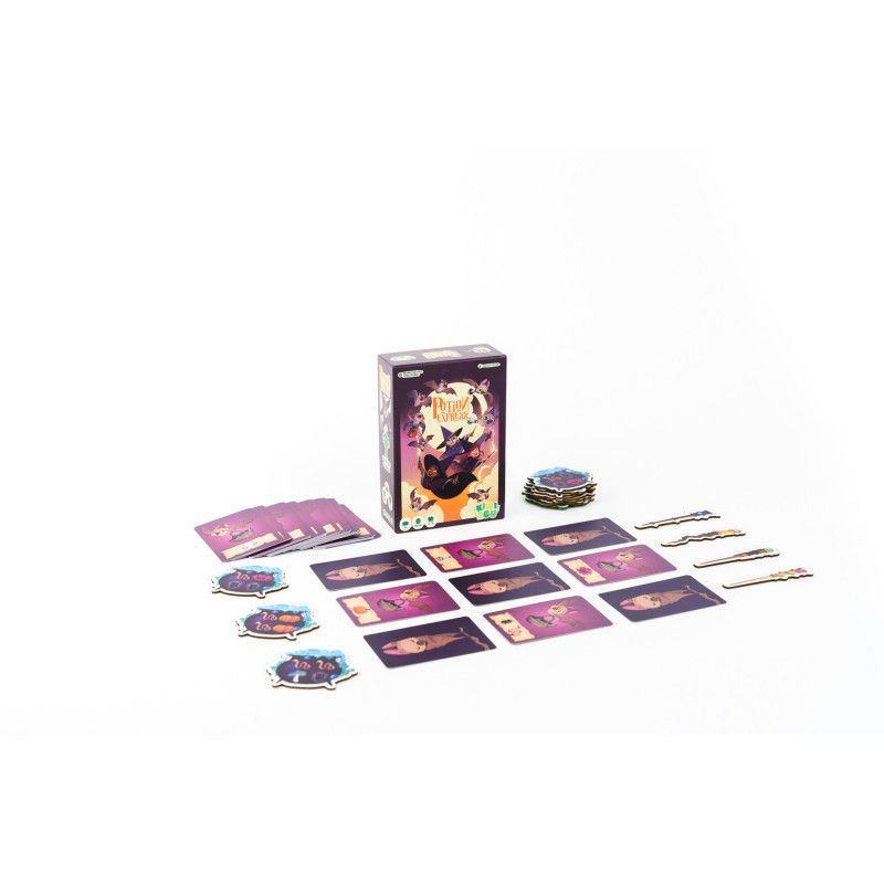 Dans Potion Express, les joueurs incarnent des pilotes chargés de livrer des potions aux sorcières du village avant l'aube. Ce jeu de collecte et de mémoire met au défi les participants de récupérer les bons ingrédients en manipulant habilement des cartes chauve-souris pour concocter les potions demandées.