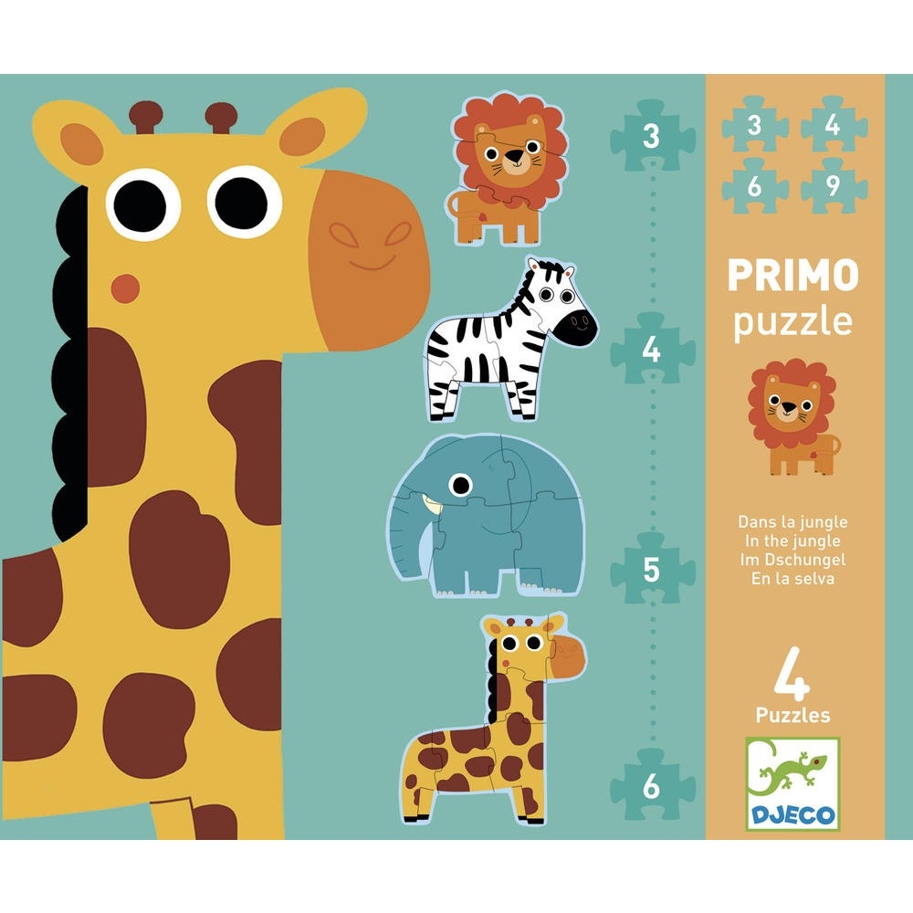 Djeco vous présente Primo puzzles "Dans la jungle" spécialement conçus pour les plus petits à partir de 2 ans.