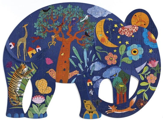 Une grande silhouette dessine un éléphant dans lequel fourmille un monde imaginaire.