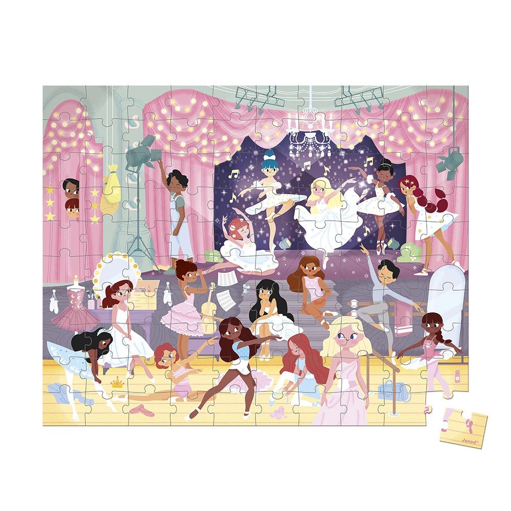 Rejoignez le ballet des petites étoiles en donnant vie à ce puzzle en carton de 100 pièces, adapté aux enfants de 6 ans et plus. En l'assemblant pièce par pièce, l'enfant découvre l'univers des danseuses et danseurs de ballet.