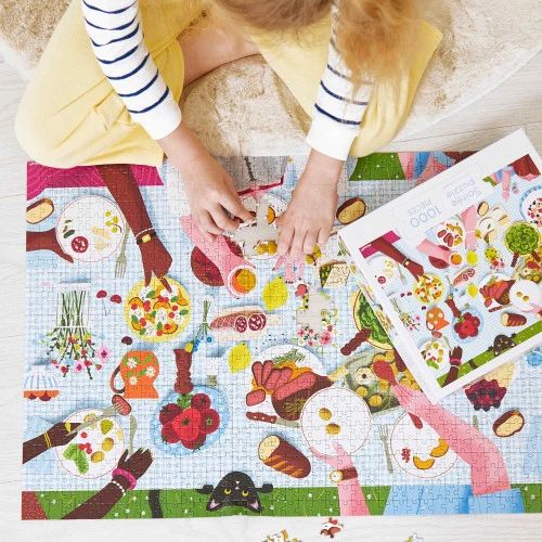 Ce puzzle de 1000 pièces illustre la diversité et la convivialité des repas de famille : une grande table, des plats dressés de part et d'autre … Et des invités prêts à se régaler. Le grand nombre et la taille des pièces font de ce puzzle un vrai challenge où minutie et logique seront indispensables pour reproduire la jolie illustration.