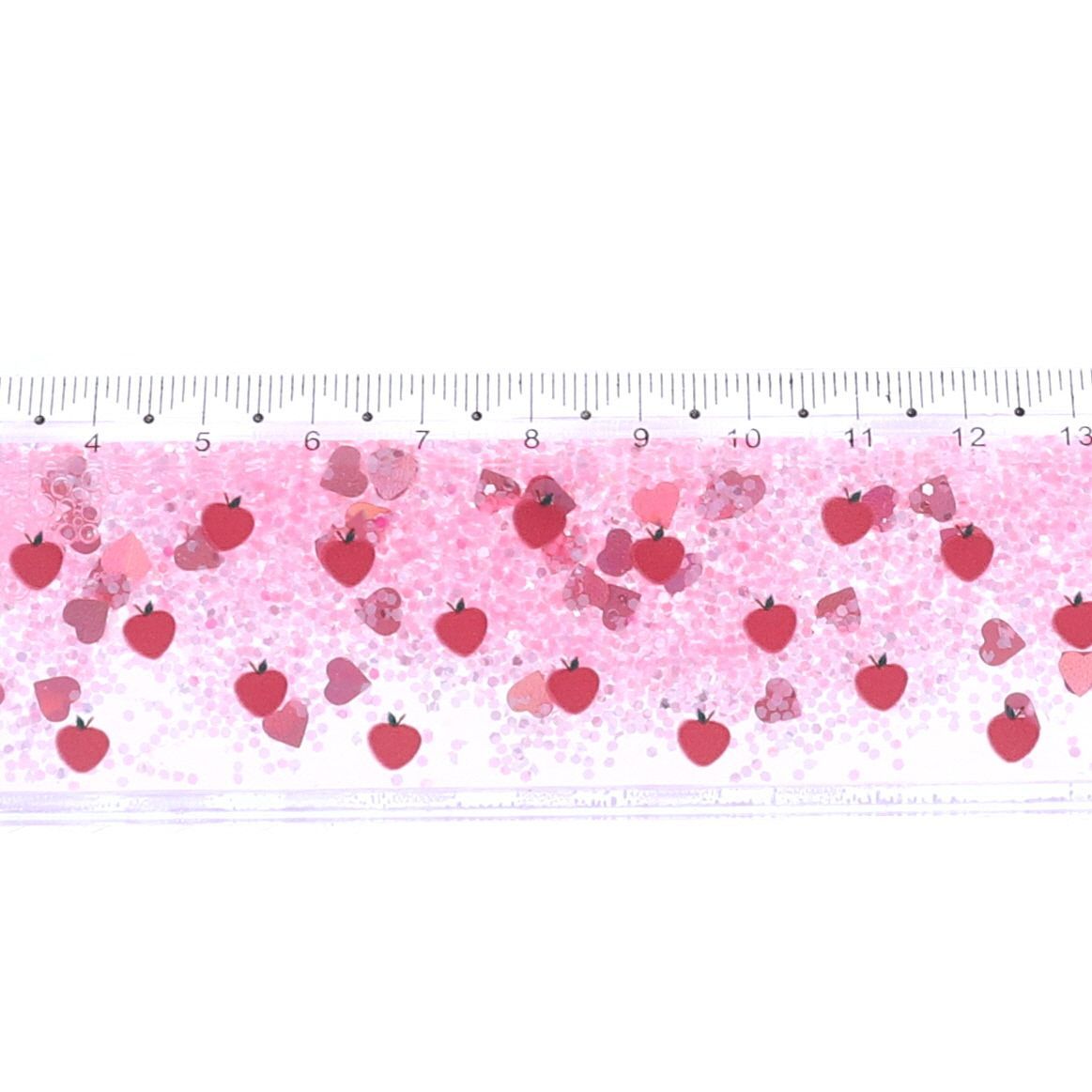 Pratique pour découvrir le monde des mesures, cette jolie règle épaisse renferme une multitude de paillettes roses avec des petits cœurs et un imprimé pommes sur le dessus !
