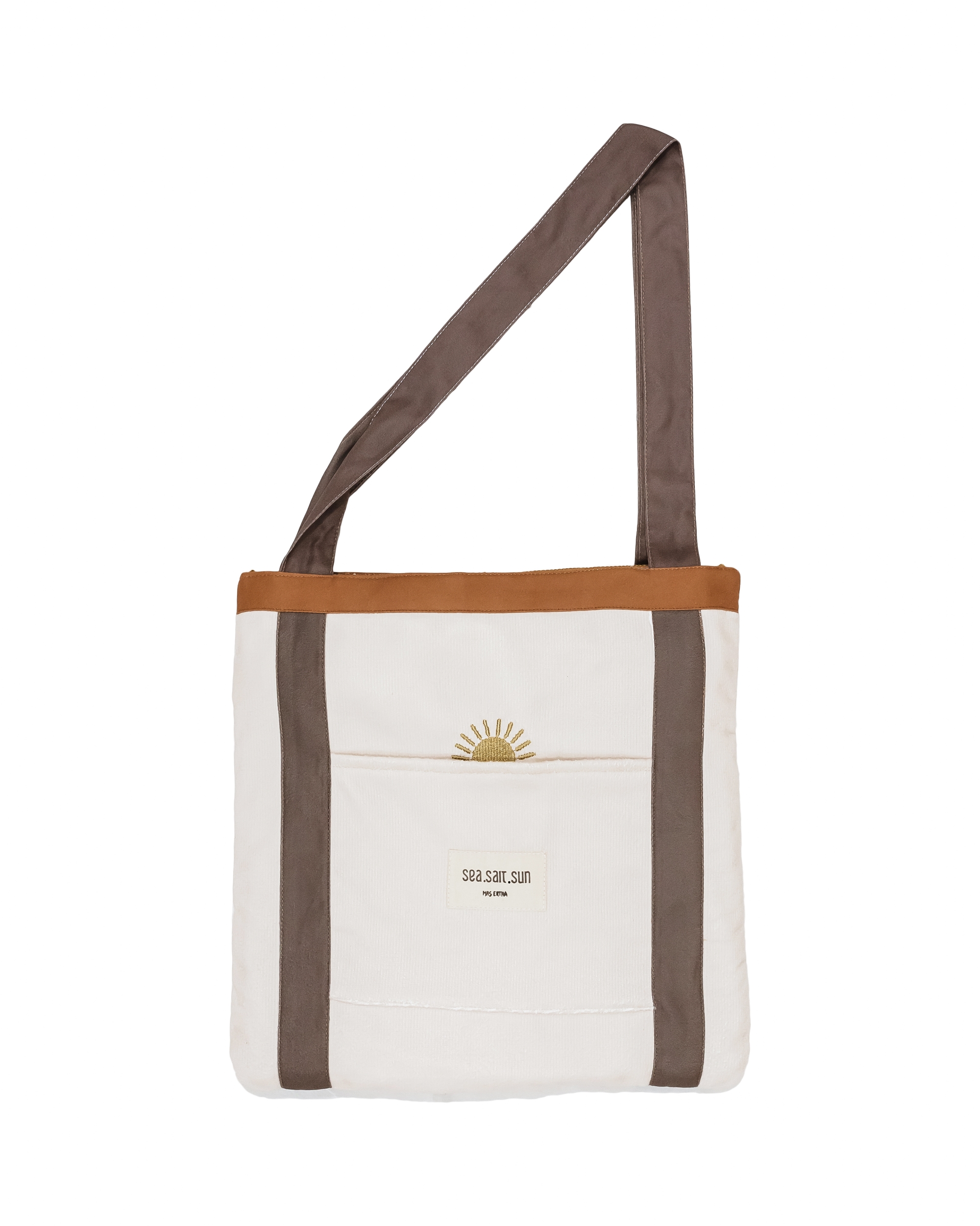 N'oubliez rien grâce à ce sac de plage de la marque portugaise Mrs. Ertha qui comprend déjà une grande serviette en microfibres.