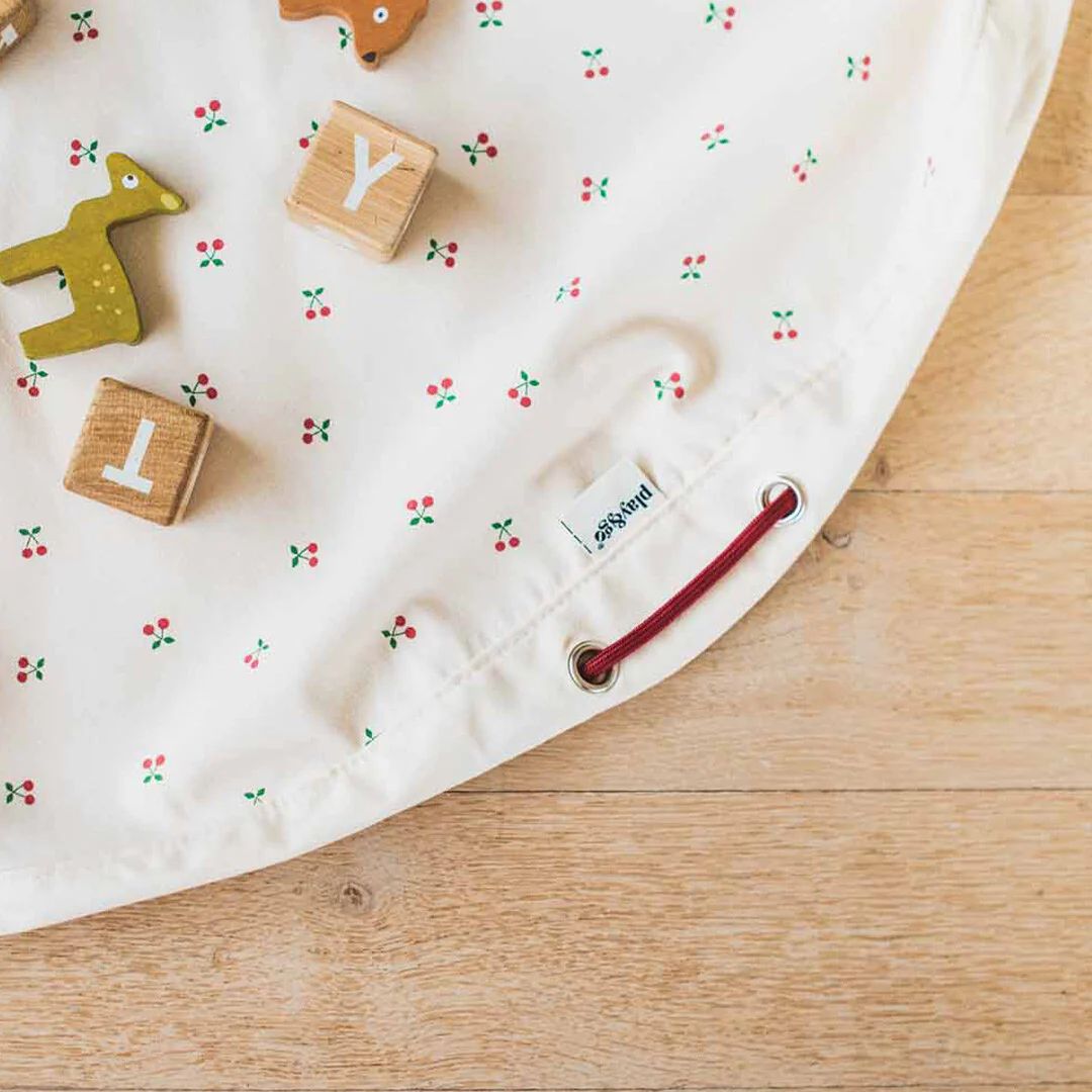 Ce tapis au motif cerise est un endroit idéal pour explorer et s'aventurer avec tous vos jouets préférés. Amenez vos amis et votre famille se reposer et jouer sur ce grand tapis circulaire aux dimensions généreuses qui peut être empaqueté et réutilisé comme sac de rangement à la fin du jeu.