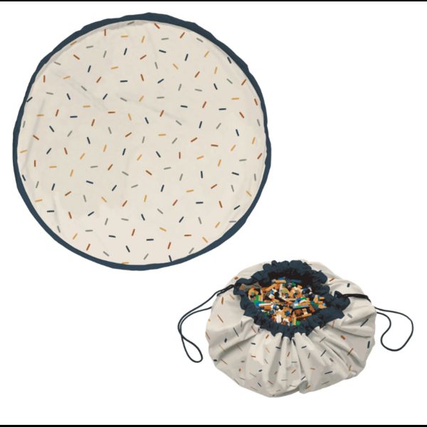 Ce tapis au motif confetti est un endroit idéal pour explorer et s'aventurer avec tous vos jouets préférés. Amenez vos amis et votre famille se reposer et jouer sur ce grand tapis circulaire aux dimensions généreuses qui peut être empaqueté et réutilisé comme sac de rangement à la fin du jeu.