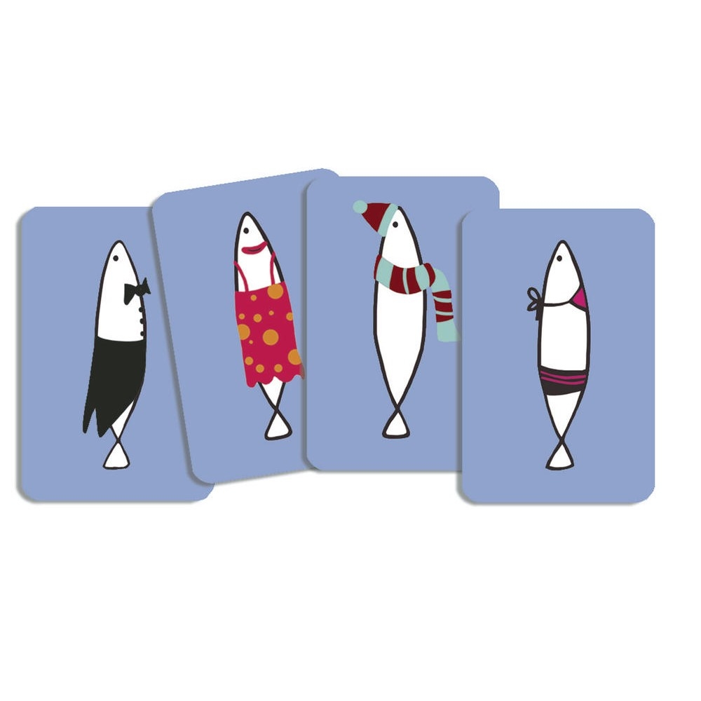 Chaque boite à sardines est composée de 7 sardines toutes habillées différemment. Les joueurs disposent de quelques secondes pour observer les sardines avant que la carte ne soit retournée.