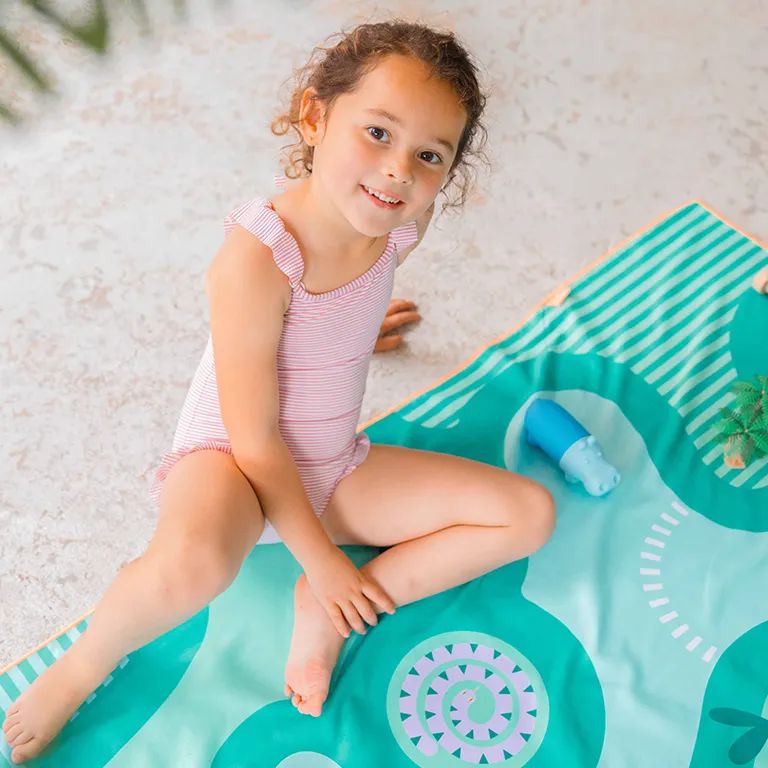 Séchez rapidement votre petit avec cette serviette Safari de Quut. Il aura de nouveau bien chaud en quelques secondes pour retourner jouer sur la plage !