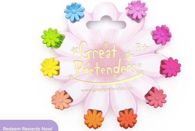 Superbe set de 10 pinces miniatures multicolores de la marque canadienne Great Pretenders. Chaque pince se présente sous la forme d'une fleur aux couleurs vives de l'arc-en-ciel.