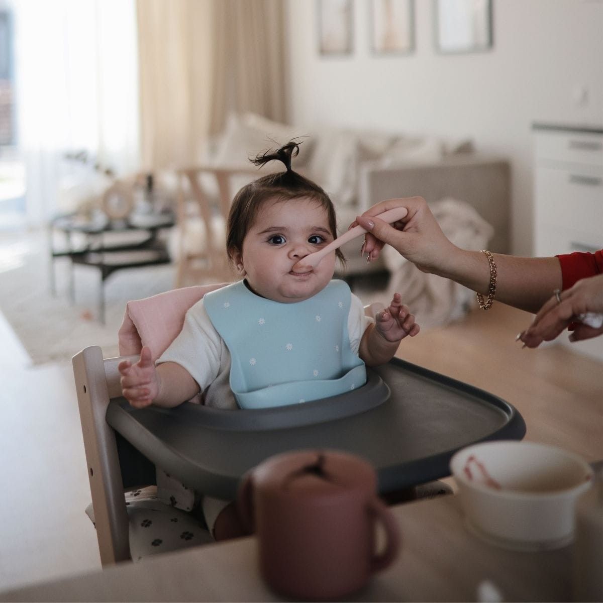 Set de 2 cuillères en silicone de chez Mushie fabriquées à partir de matériaux 100% sans BPA et sans produits chimiques, nos cuillères en silicone sont parfaites pour nourrir votre bébé.