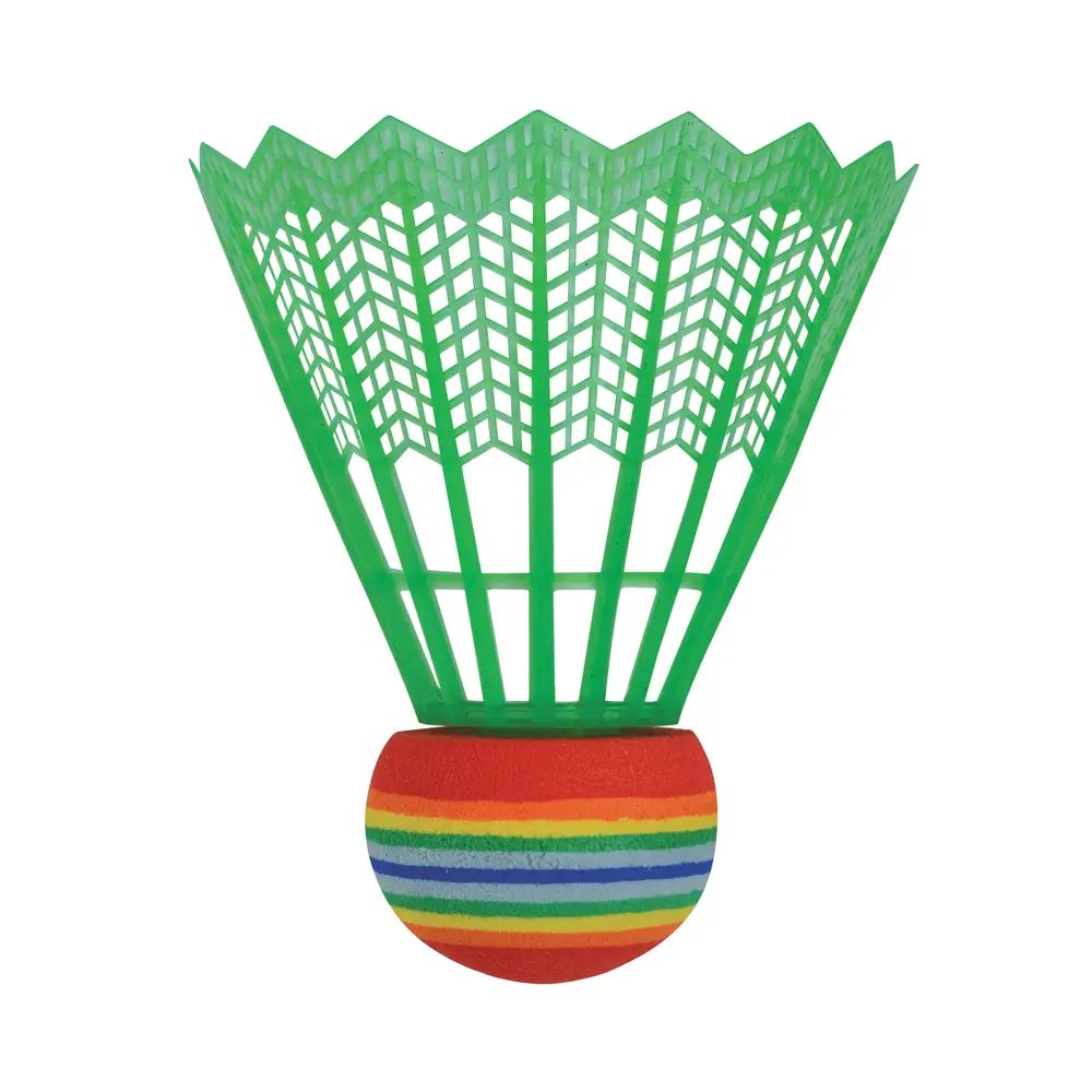 3 Volants en plastique coloré avec une tête en mousse. Extra léger et lent. Idéal pour les enfants comme aide à l'apprentissage du jeu de badminton.
