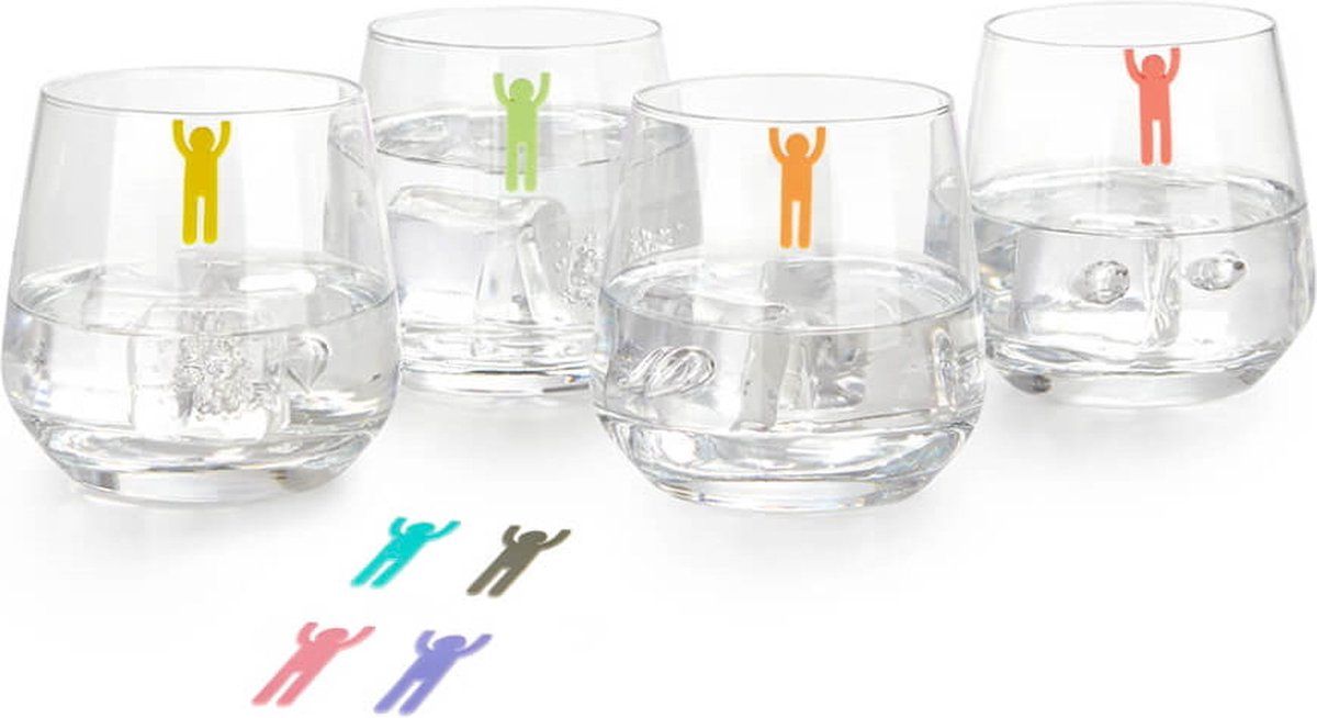 Un set de 8 marqueurs de verre au joli designs pour pouvoir distinguer les verres lors de la fête. Il suffit de les coller sur le verre et de les enlever après utilisation.