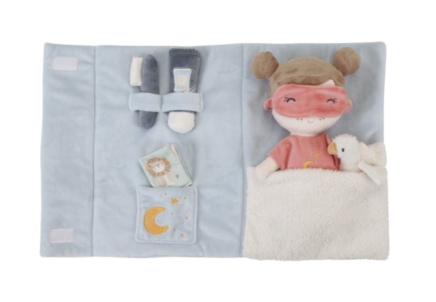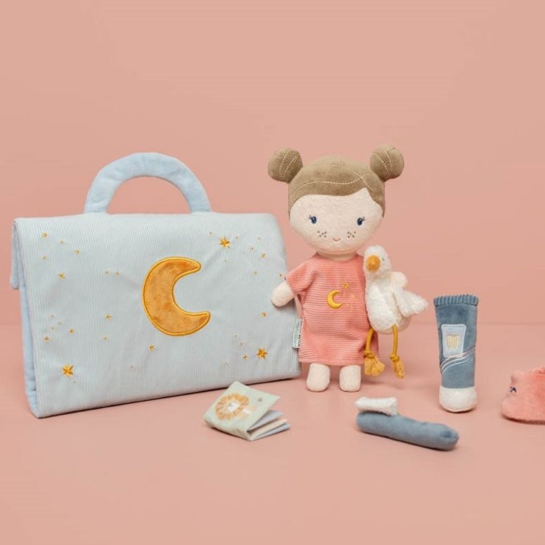 C'est l'heure de la soirée pyjama ! Vous trouverez dans cette valisette en tissu Little Dutch tout le matériel nécessaire pour coucher Rosa.