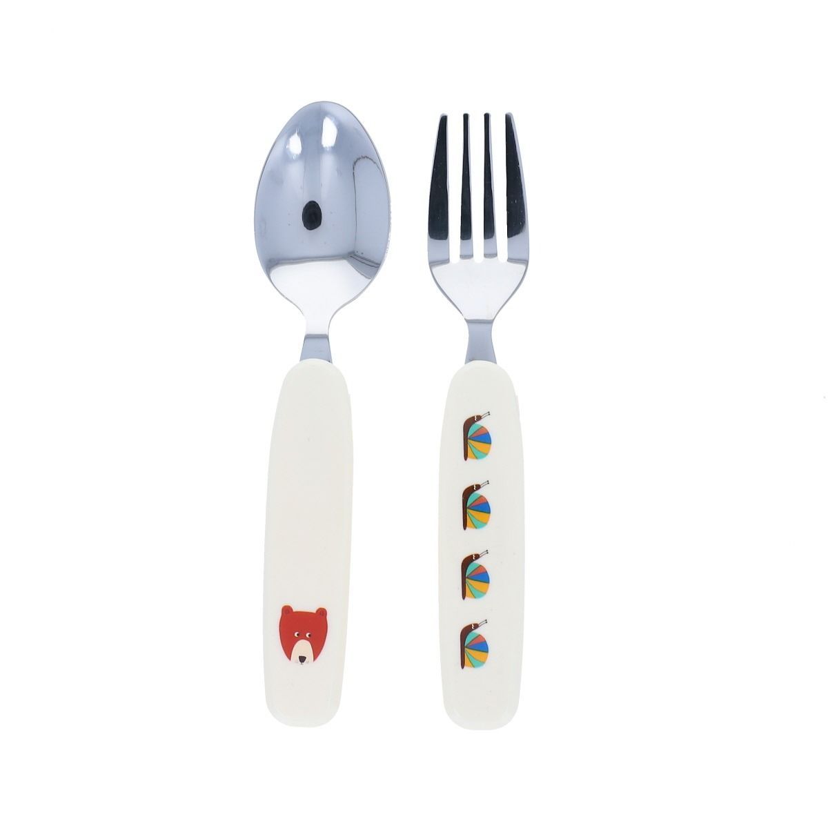 Ce set de couverts comprend une cuillère et une fourchette joliment décorées d'animaux de la forêt. Très pratique, la boîte permet de les emporter partout et de les garder toujours propres.