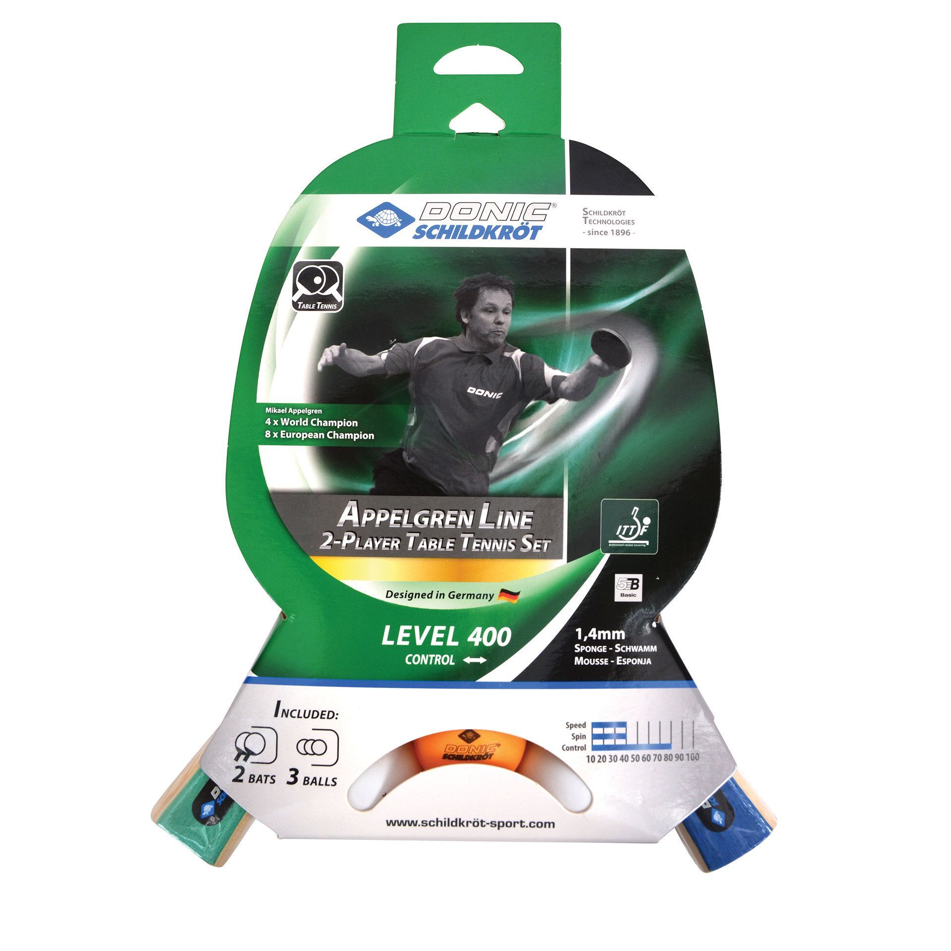 Il comprend 2 raquettes (picots internes, tapis lisse Schildkröt, homologuées ITTF) avec une mousse de 1,4 mm d'épaisseur pour un excel