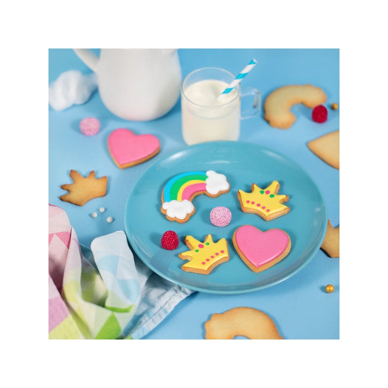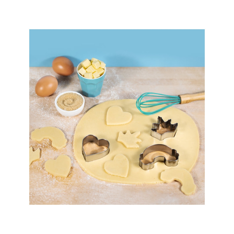 - 3 emporte-pièces en métal : cœur, arc-en-ciel et couronne