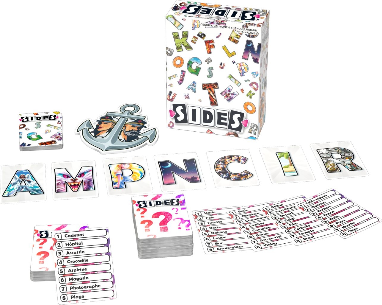 Contenu : 26 cartes-lettres, 110 cartes-mots comportant 8 mots chacune, 1 tuile capitaine, règles de 12 pages
