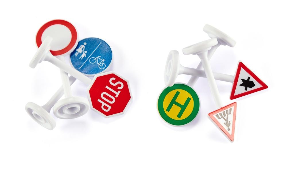 Placez les panneaux de signalisation Siku sur les axes routiers afin que les pilotes soient informés des règles de circulation.