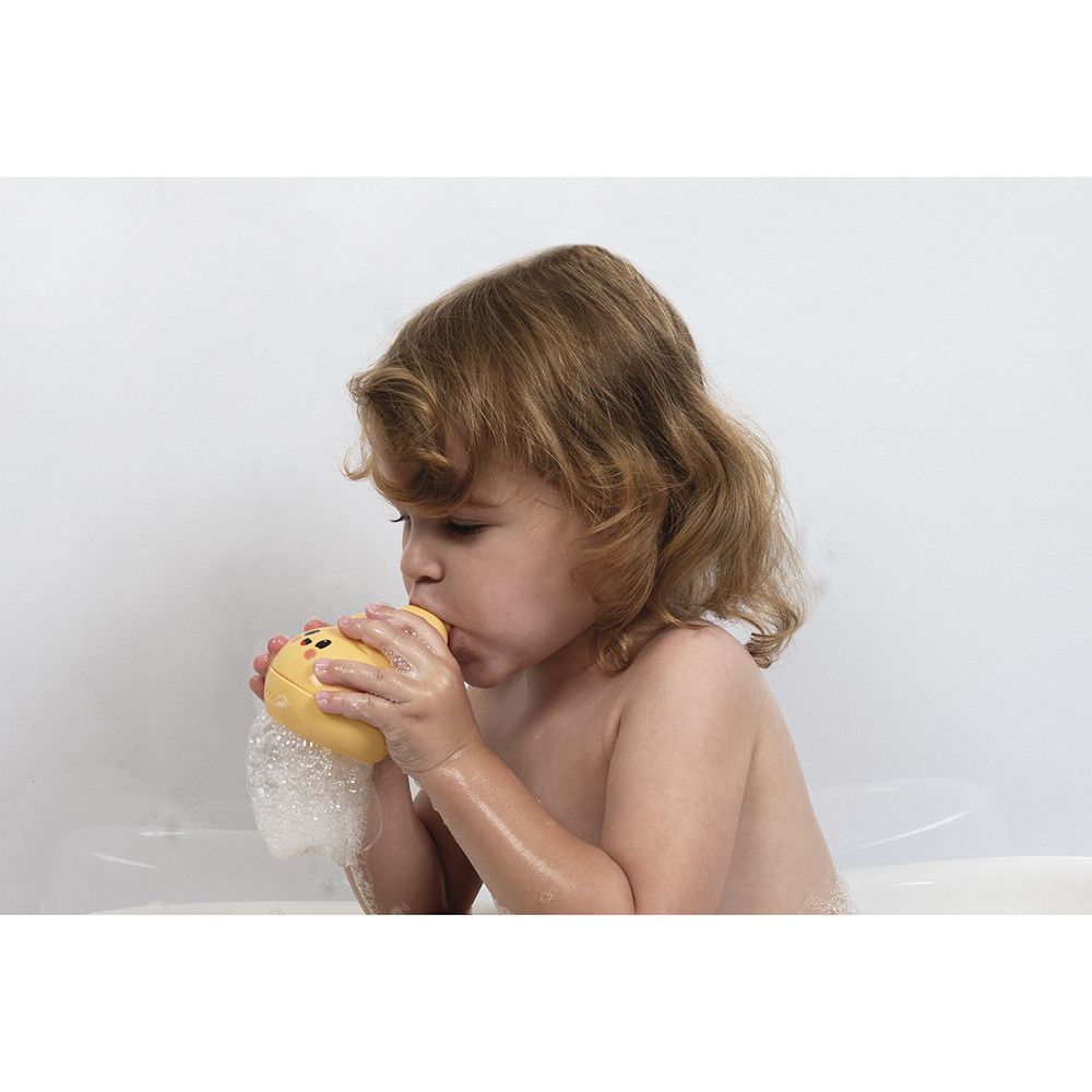 Comment ça marche ? C'est très simple ! Il suffit d'humidifier le disque en tissu présent en dessous, de le savonner abondamment et d'assembler le coquillage. L'enfant peut ensuite tremper Bullix dans l'eau du bain et souffler doucement par le haut de sa coquille pour faire sortir les bulles ! Plus on souffle plus les bulles volent partout !