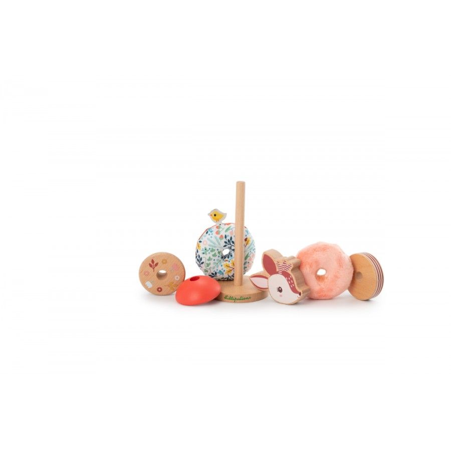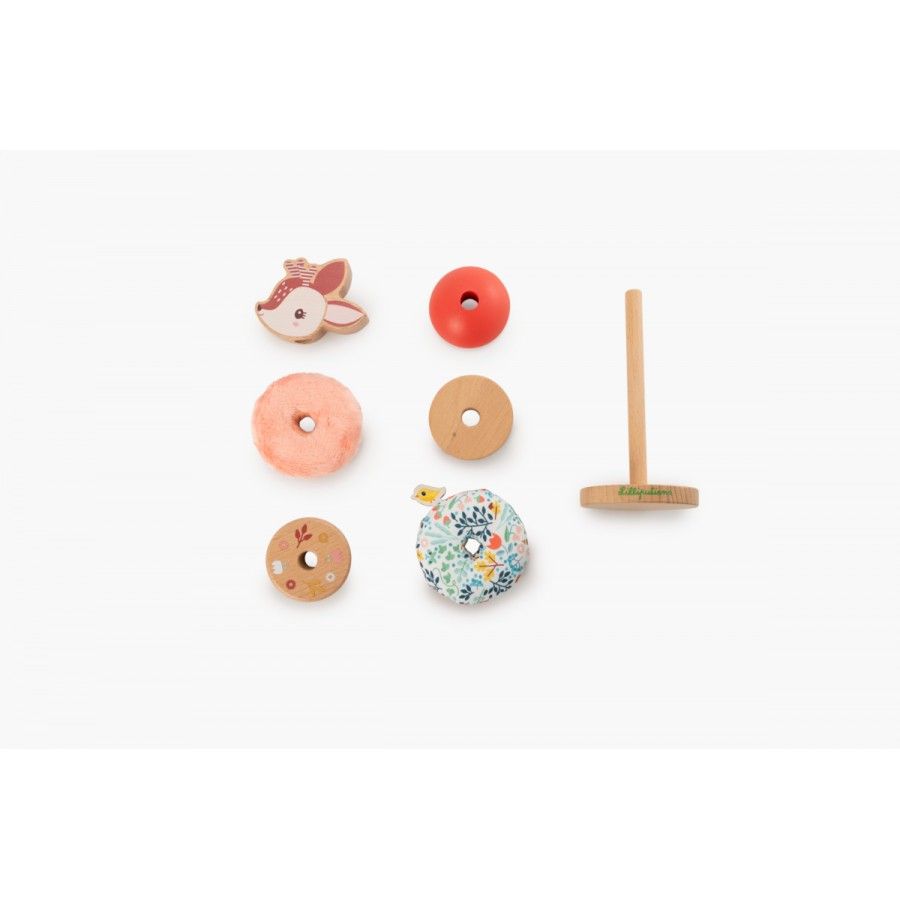 Retrouvez Stella le faon de la collection Lilliputiens sous la forme d'une jolie pyramide à empiler qui permet développer la motricité fine, l'imagination et la réflexion des petits loups.