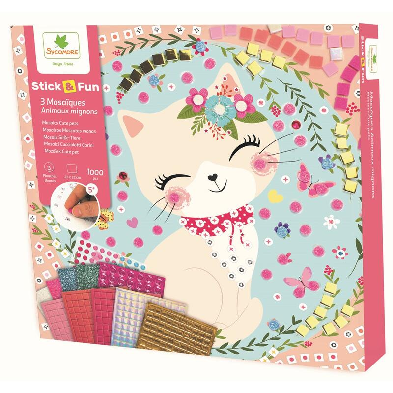 Ce kit de mosaïques Stick & fun permet de réaliser 3 tableaux sur le thème des animaux mignons.