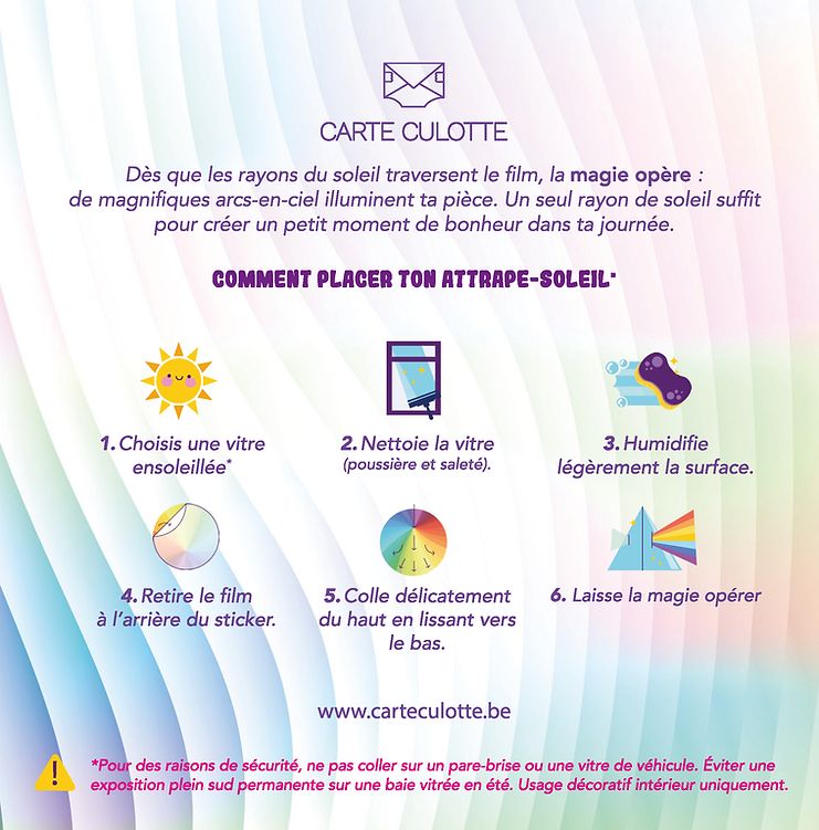 Dès que les rayons du soleil traversent le film du sticker, la magie opère : de magnifiques arcs-en-ciel illuminent votre intérieur.