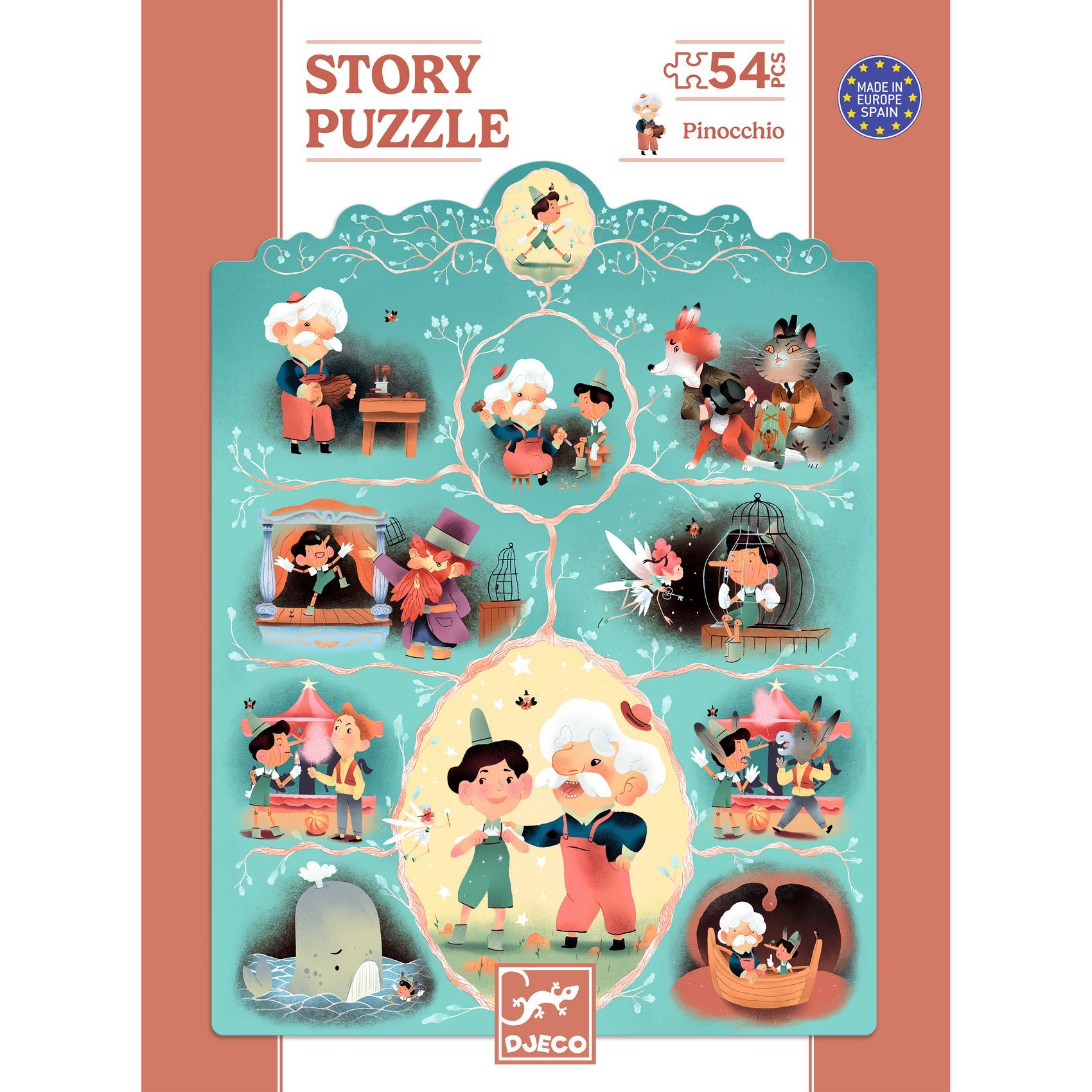 Le Story puzzle - Pinocchio est un magnifique puzzle de 54 pièces qui illustre le célèbre conte du même nom sous forme de BD muette. Il est accompagné de 3 petits personnages.