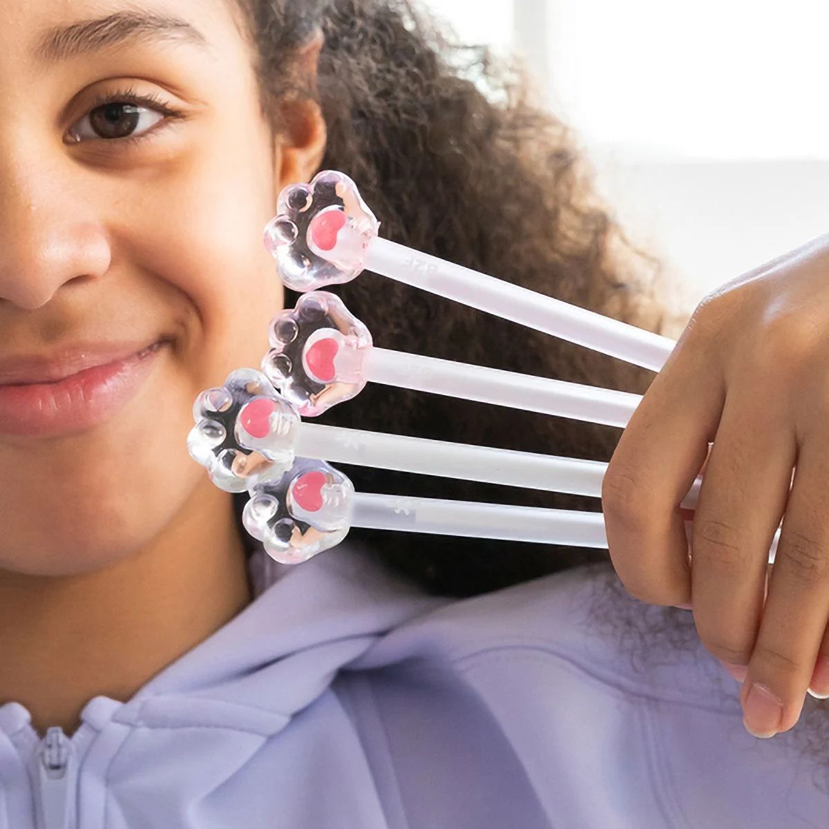 Stylo bille en plastique avec une tête en forme de patte de chat