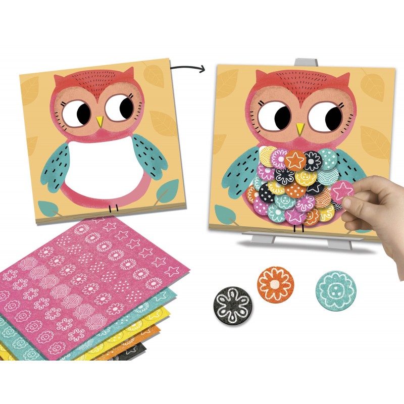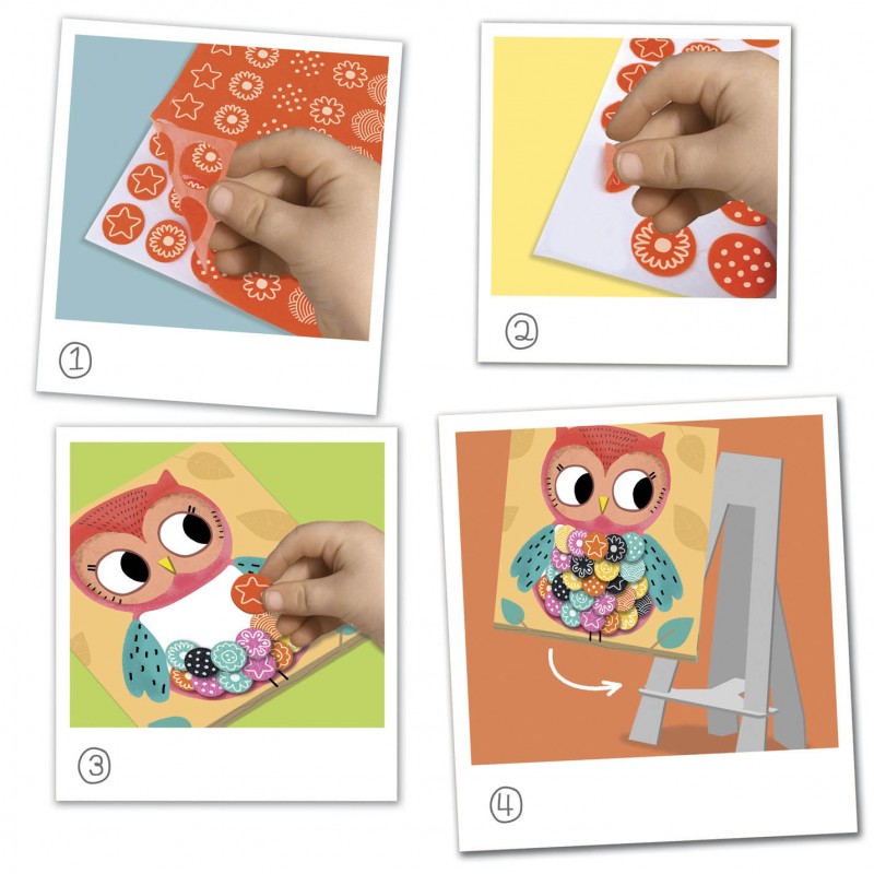 Les enfants pourront créer de jolies tableaux tout doux grâce aux gommettes de feutrine autocollantes. Ils sauront révéler leur âme d'artiste en panachant les couleurs et les motifs.